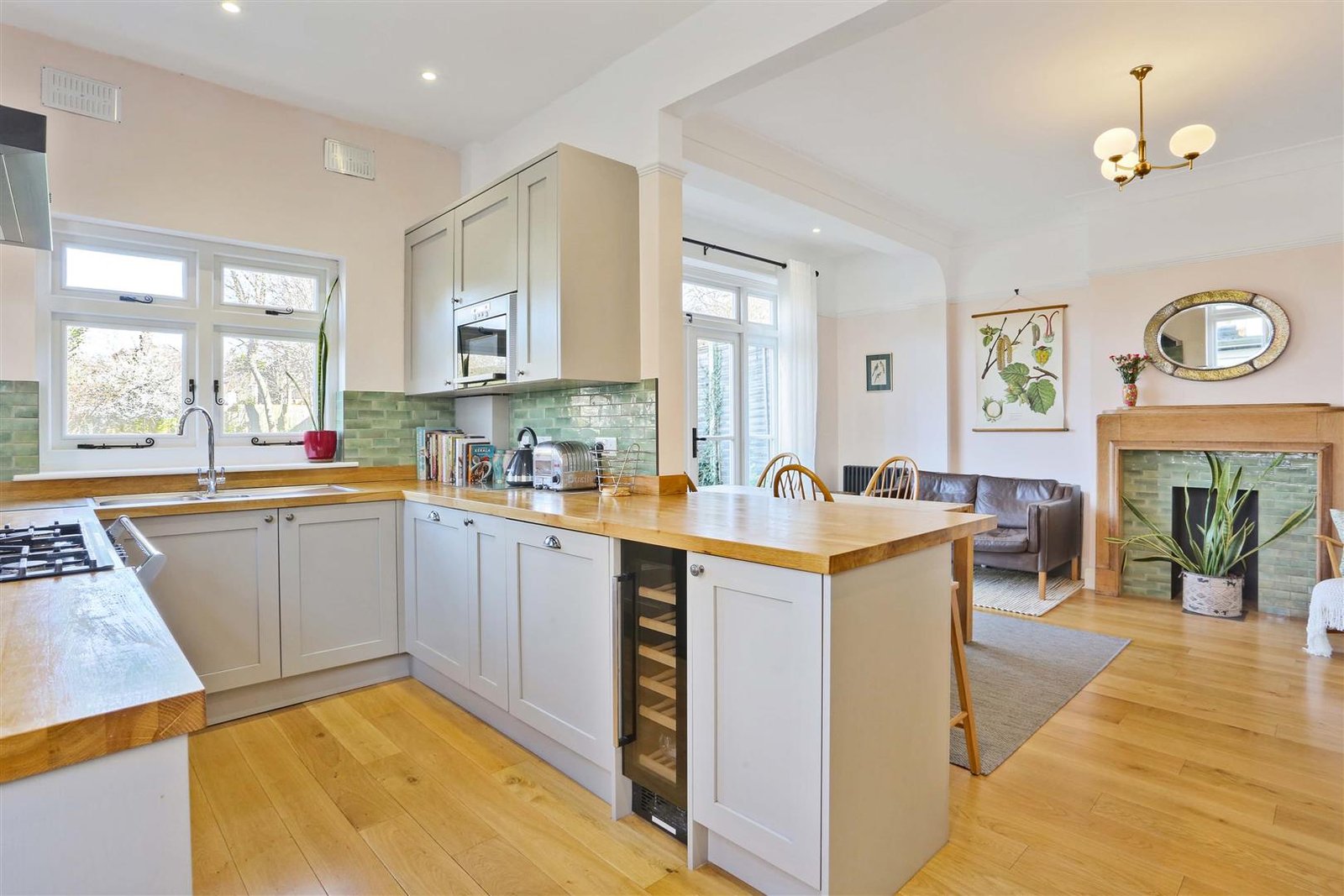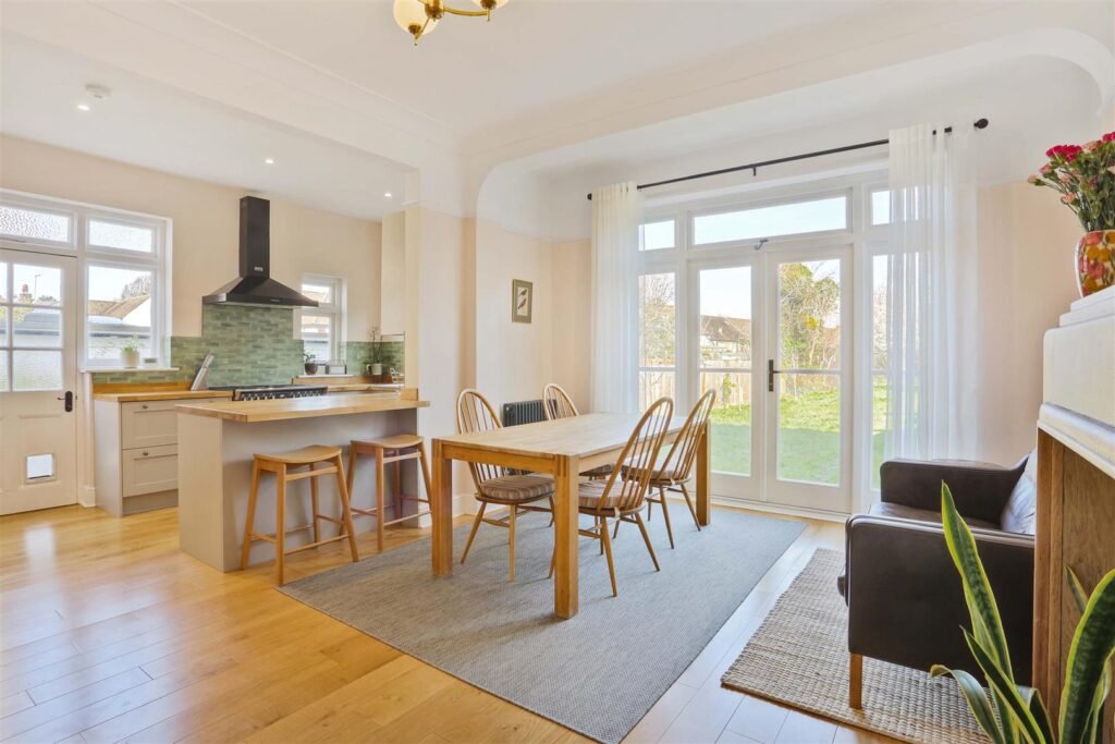 The house features two inviting reception rooms, providing ample space for relaxation and entertaining guests. The heart of the home is undoubtedly the kitchen and dining area, which overlooks the beautifully maintained garden, creating a bright and airy atmosphere. This space is perfect for family meals or hosting gatherings with friends.