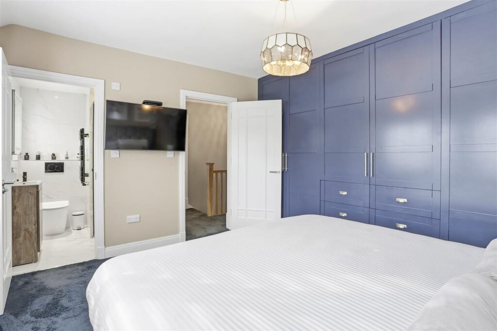 Upstairs, the property continues to impress with four well-proportioned bedrooms. The principal bedroom benefits from its own en-suite shower room, while a stylish family bathroom serves the remaining bedrooms, providing comfortable and well-balanced accommodation for growing families.