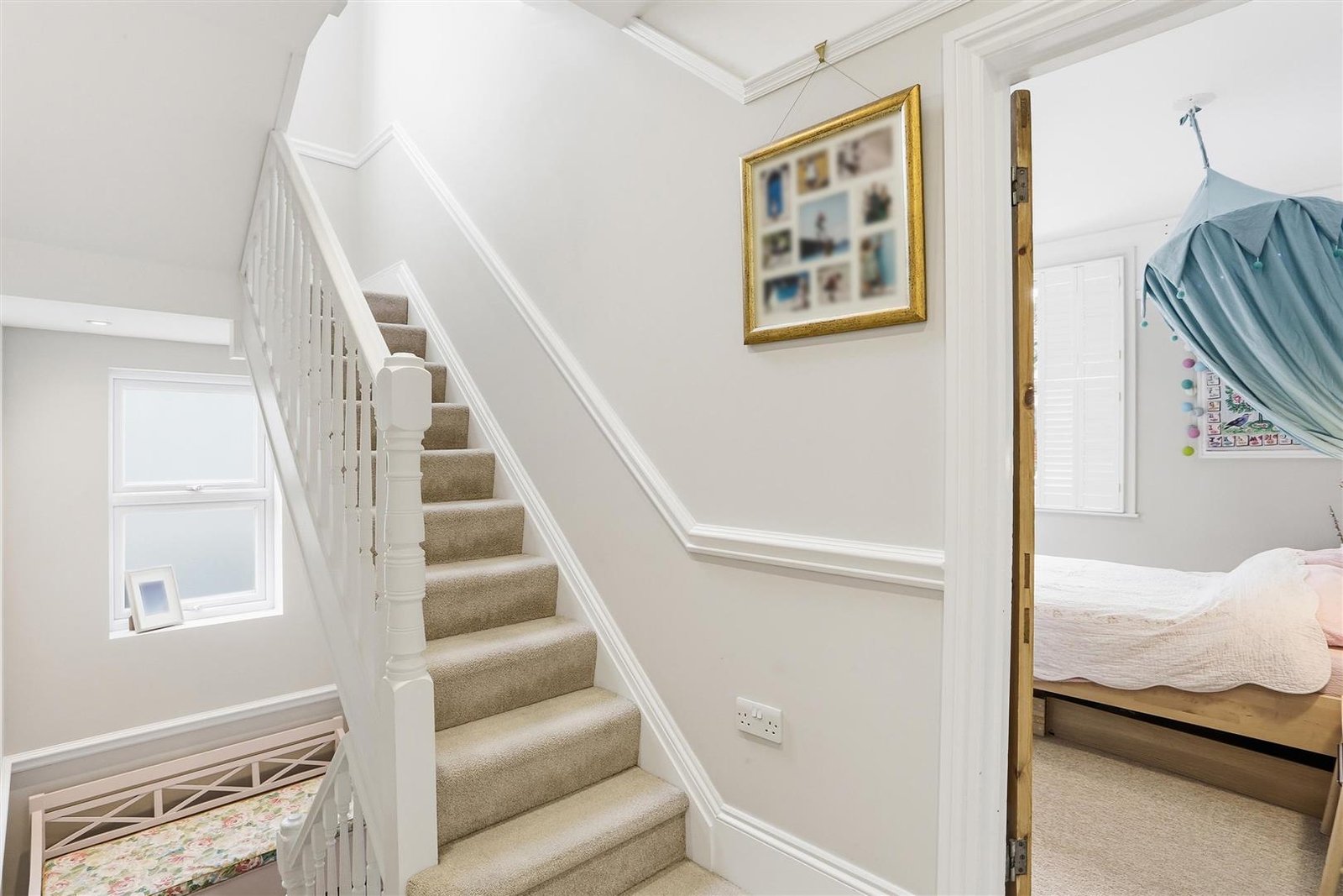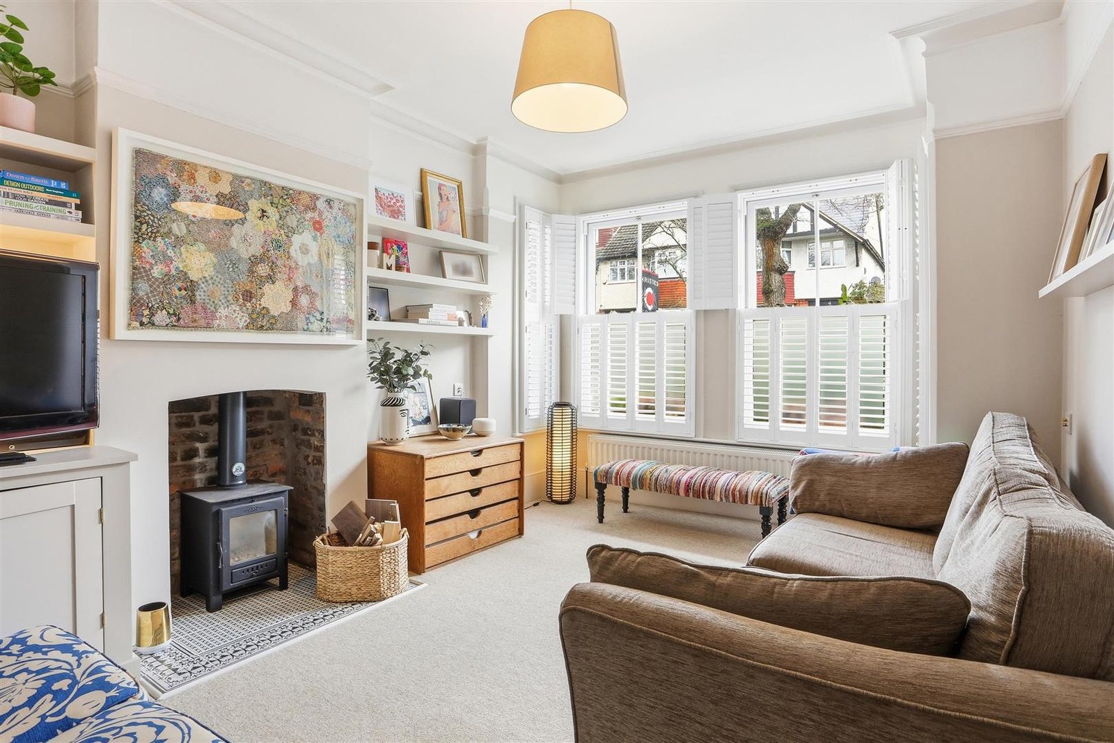 The ground floor is centred around an impressive open-plan kitchen/dining/family room, creating a true focal point for modern family living with direct access to the rear garden. To the front, a separate reception room with log burner provides a more formal yet inviting space. A utility room, shower room, pantry, and workshop add a level of practicality rarely found in homes of this type. Plantation shutters throughout further enhance the property’s character and period appeal.