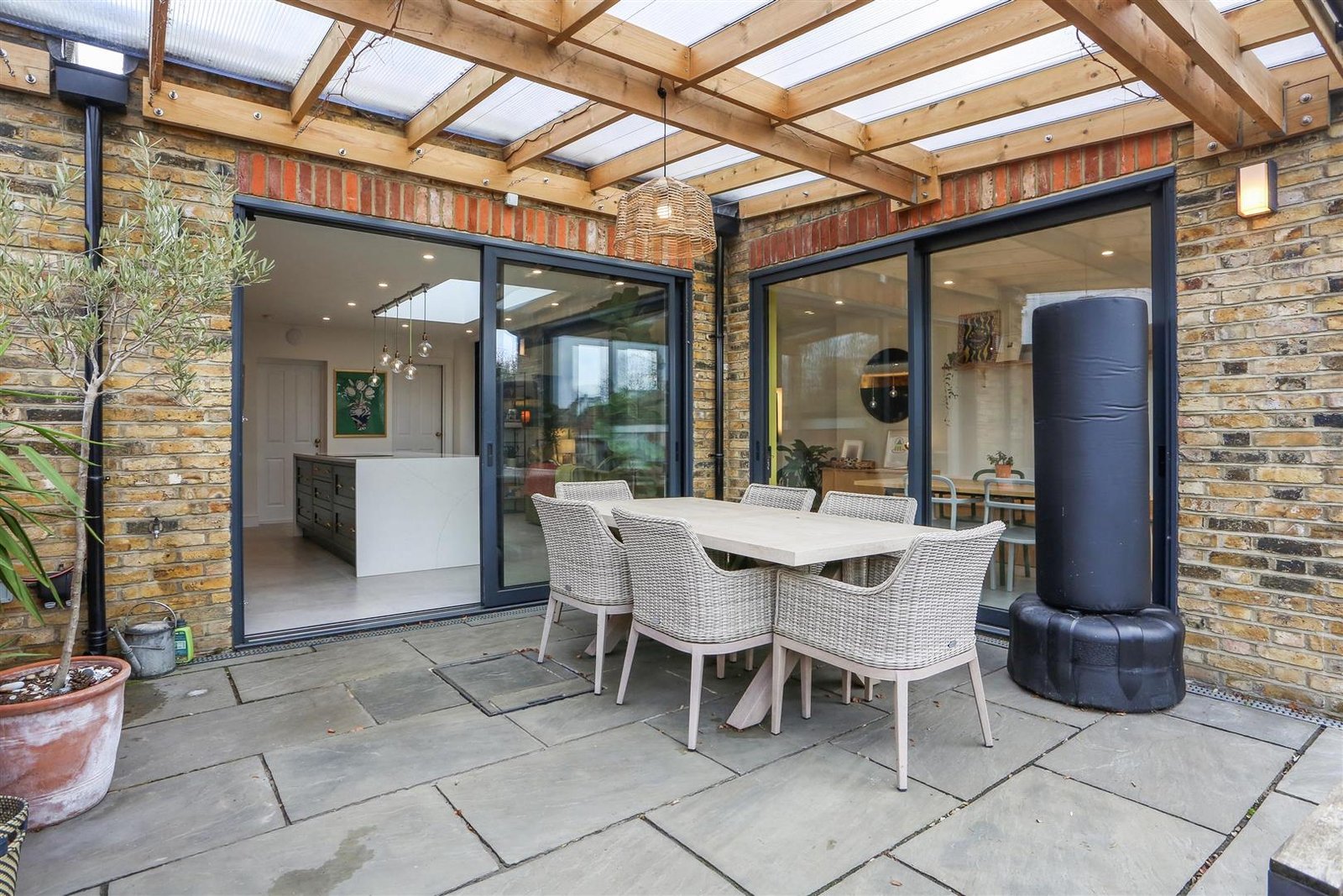 Externally, the tiered west facing rear garden provides a genuine sun trap throughout the afternoon and evening. A covered patio with pergola ensures the space can be enjoyed year-round.