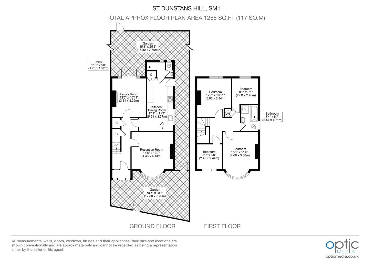 The ground floor provides excellent living and entertaining space, comprising a spacious front reception room with attractive bay window, a separate family room, and a well-proportioned kitchen/dining room that serves as the heart of the home. Additional practical features include a utility area and convenient ground floor WC, enhancing day-to-day functionality.