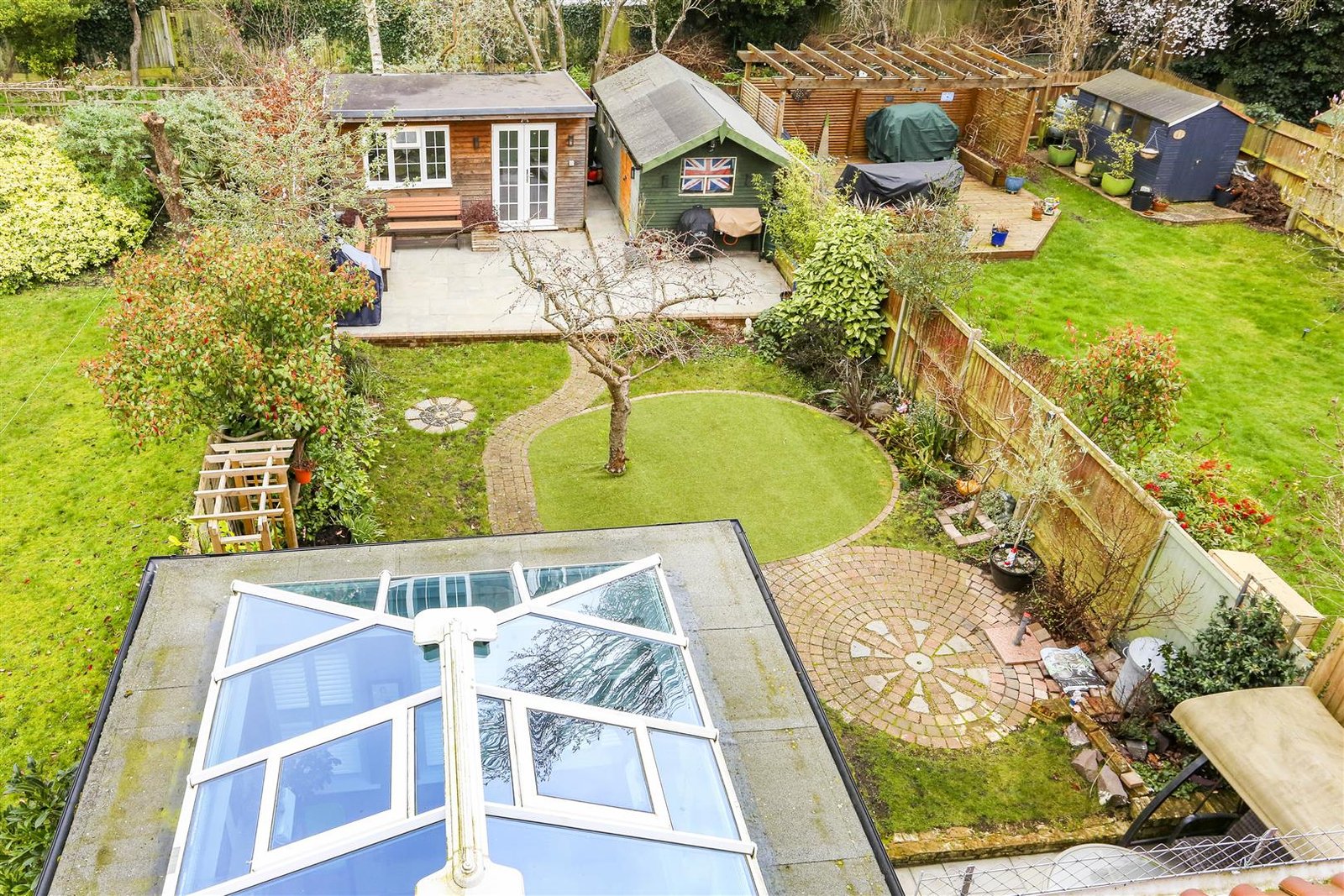 With working from home, a popular option for many the garden offers an office/studio as well as a lawn area.
